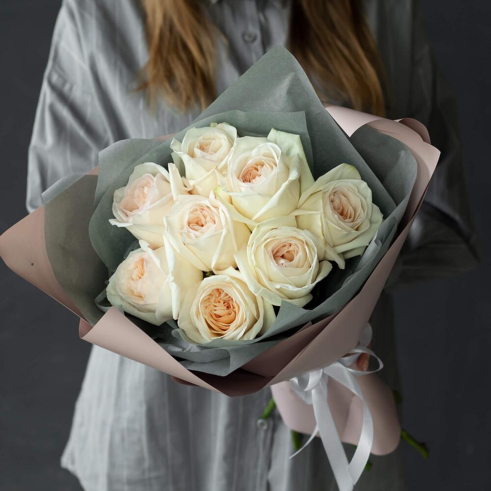 9 пионовидных роз Вайт Охара в Арамиле